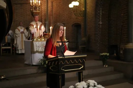 — Jeg mener skolens katolske identitet også står veldig sterkt i dag. Dessverre er det ikke slik at det er søstre som driver skolen lengre. Den gang var jo det katolske veldig synlig. Nå er søstrene mer usynlig tilstede hos oss, ved at hver klasse har en søster som ber for dem og bilde av denne søsteren henger i klasserommet. Det henger også et kors i alle rom her ved skolen. Klassene feirer en messe hver måned og noen måneder er de oftere i kirken. I tillegg bes det morgenbønn og bordbønn hver dag.