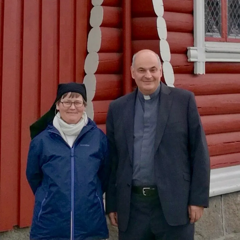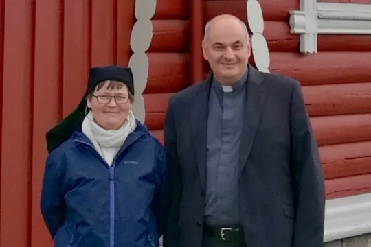 Rettsvikar Fr. Gerard Canon Tartaglia og sekretariatets moderator sr. Ane-Elisabet Røer i Fredrikstad.