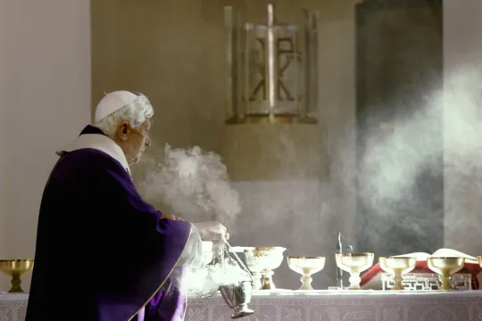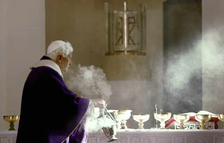 FORSKING PÅ MESSER: Når prester og musikkansvarlige forandrer liturgien for å gjøre den mer tilgjengelig, så får det nøyaktig motsatt effekt, viser en ny amerikansk undersøkelse. På bildet ser du pave Benedict XVI feire messe i kirken St.Felicita, Roma, 25. mars 2007. Foto: REUTERS / Alessandro Bianchi / Scanpix