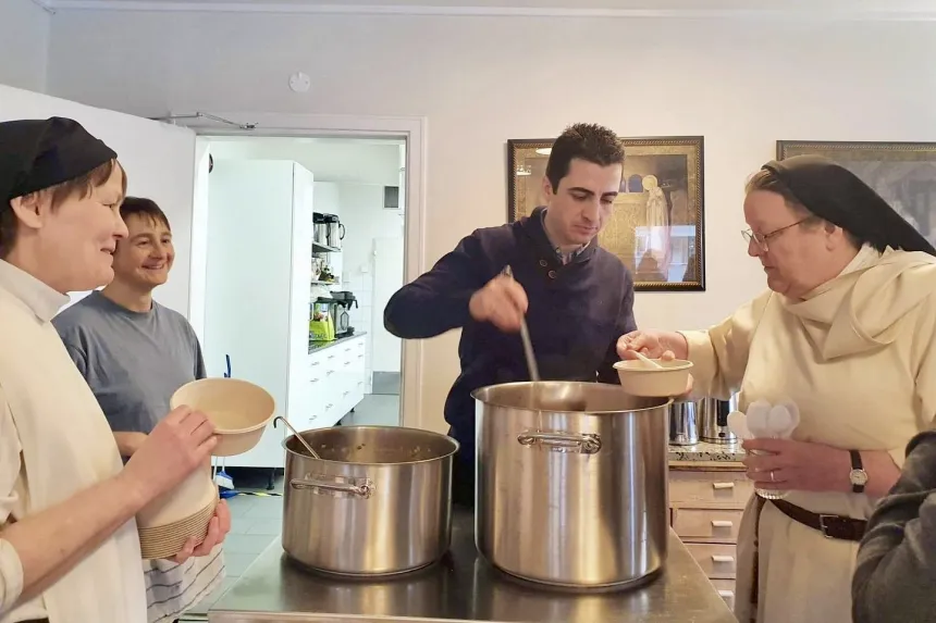 SAMLES OM MÅLTIDENE: Mathåndtering under et arrangement. Foto: Sta. Katarinahjemmets arkiv